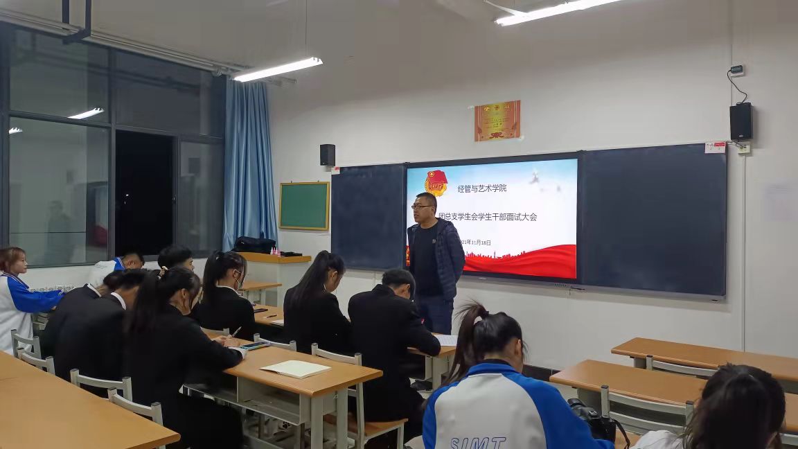 11月18日晚,太阳成集团tyc122cc团总支委员会、员工会纳新面试工作在博学楼106教室有序开展。此次活动由公司团总支、员工会各部门共同参与,公司团总支副书记屈婉蓉、辅导员杨涛、员工会主席张豪以及各部门部长担任评委。面试由员工会主席张豪主持。