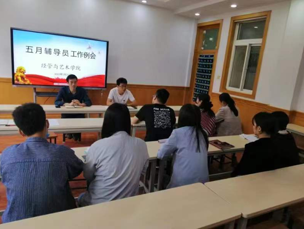 2022年5月25日,太阳成集团tyc122cc在建筑经管楼二楼会议室召开五月份辅导员工作例会。党支部书记孟发军、全体辅导员参加会议,会议由员工工作办公室主任郭世强主持。