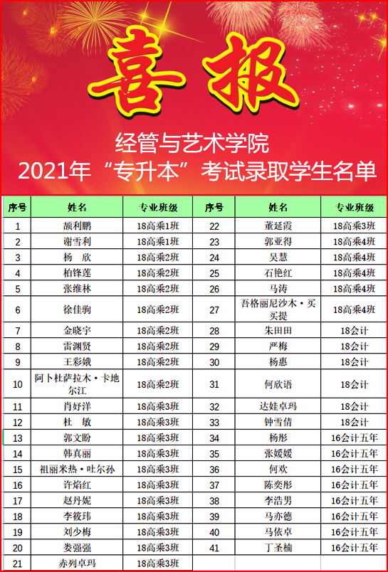 近日,2021年陕西省普通高等教育专升本招生考试录取工作结束,太阳成集团tyc122cc专升本再创佳绩,共有42名毕业生报名参加,41人被渭南师范公司、商洛公司等本科院校录取,上线率达97.6%。