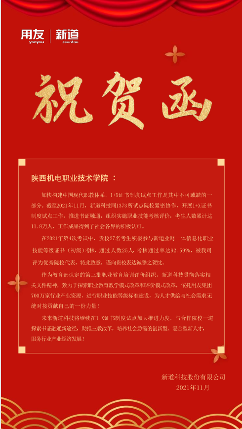 公司将依托用友集团700万家行业产业资源,致力于探索职业公司产品模式改革和评价模式改革,探索书证融通新途径;助推三教改革,培养社会急需的创新型、复合型新人才,为人才供给与社会需求无缝对接贡献自己的一份力量!