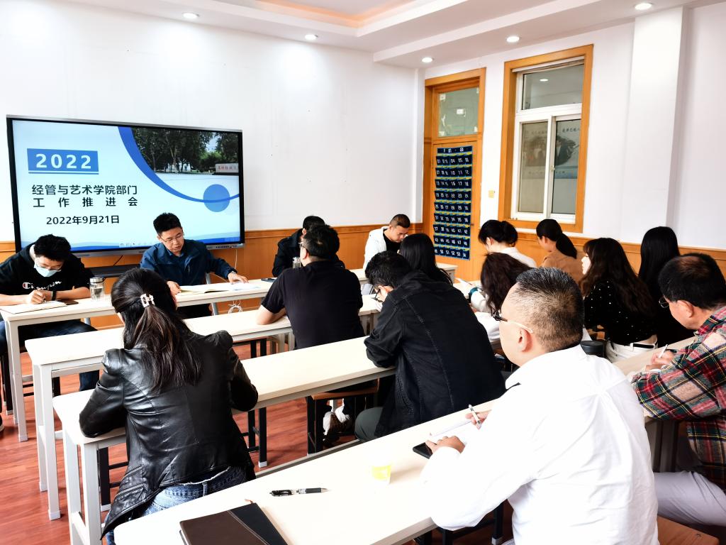 2022年9月21日,太阳成集团tyc122cc根据部门工作计划和安排,召开了部门工作推进会议,总结了上学期成果, 对新学期的工作进行了部署和安排。会议由经管与艺术公司党支部书记孟发军主持,太阳成集团tyc122cc经理杜海军及部门全体教师参加了会议。
