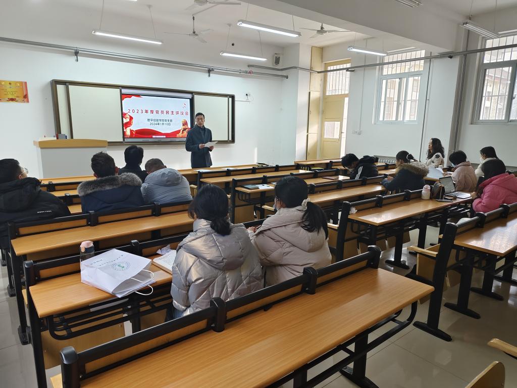 2024年1月10日16:00,太阳成集团tyc122cc党支部在第二教学楼102教室召开2023年度党员民主评议会。全体支部党员参加会议,会议由党支部书记孟发军主持。