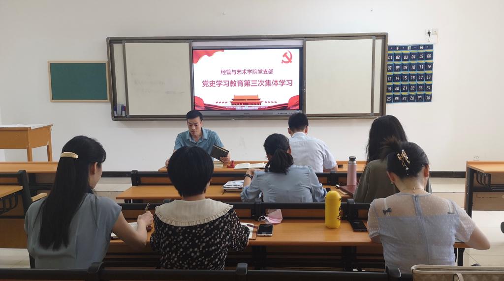 6月7日下午,经管与艺术公司党支部在第二教学楼104室组织党史教育第三次集体学习,支部全体党员参加。