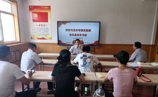 2022年6月27日下午,经管与艺术公司党支部在经管与艺术楼二楼会议室召开支部党员会议,支部全体党员参加,会议由支部书记孟发军主持。