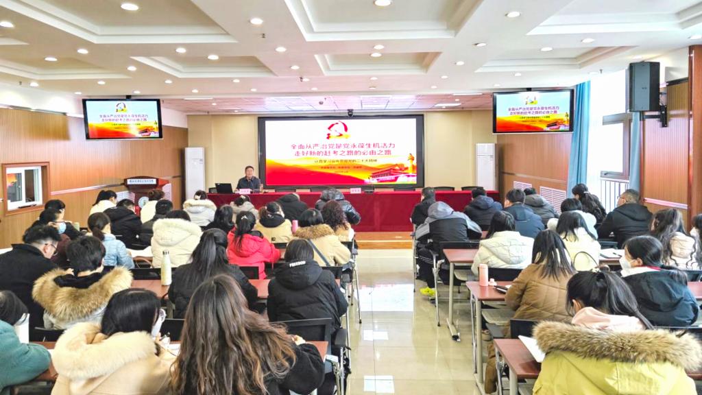 2023年2月2日下午,公司党委副书记、纪委书记齐晓军在宝福路校区汽车机电大楼四楼视频会议室讲授《全面从严治党是党永葆生机活力、走好新的赶考之路的必由之路》专题党课,基础部党支部、经管与艺术公司党支部所辖部门全体教职工、纪委委员、纪检委员等60多人参加,纪委副书记、纪律检查室主任王芙蓉主持会议。