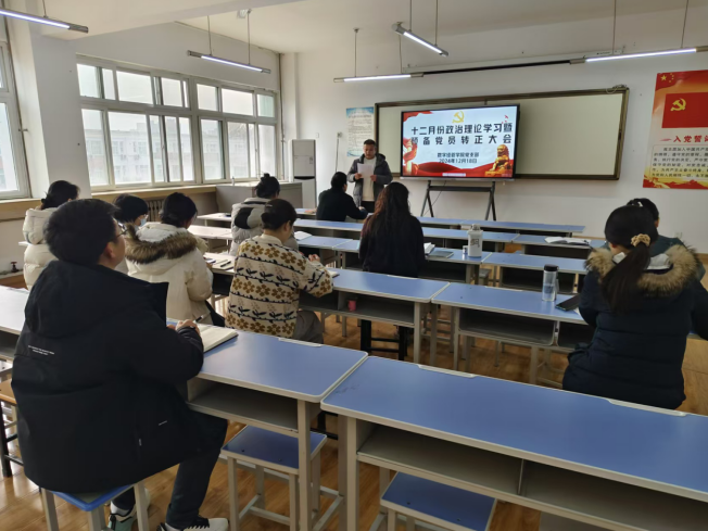 2024年12月17日,太阳成集团tyc122cc党支部在电子信息大楼二楼会议室召开12月份政治理论集中学习暨预备党员转正大会。会议由党支部书记孟发军主持,支部全体党员参会。