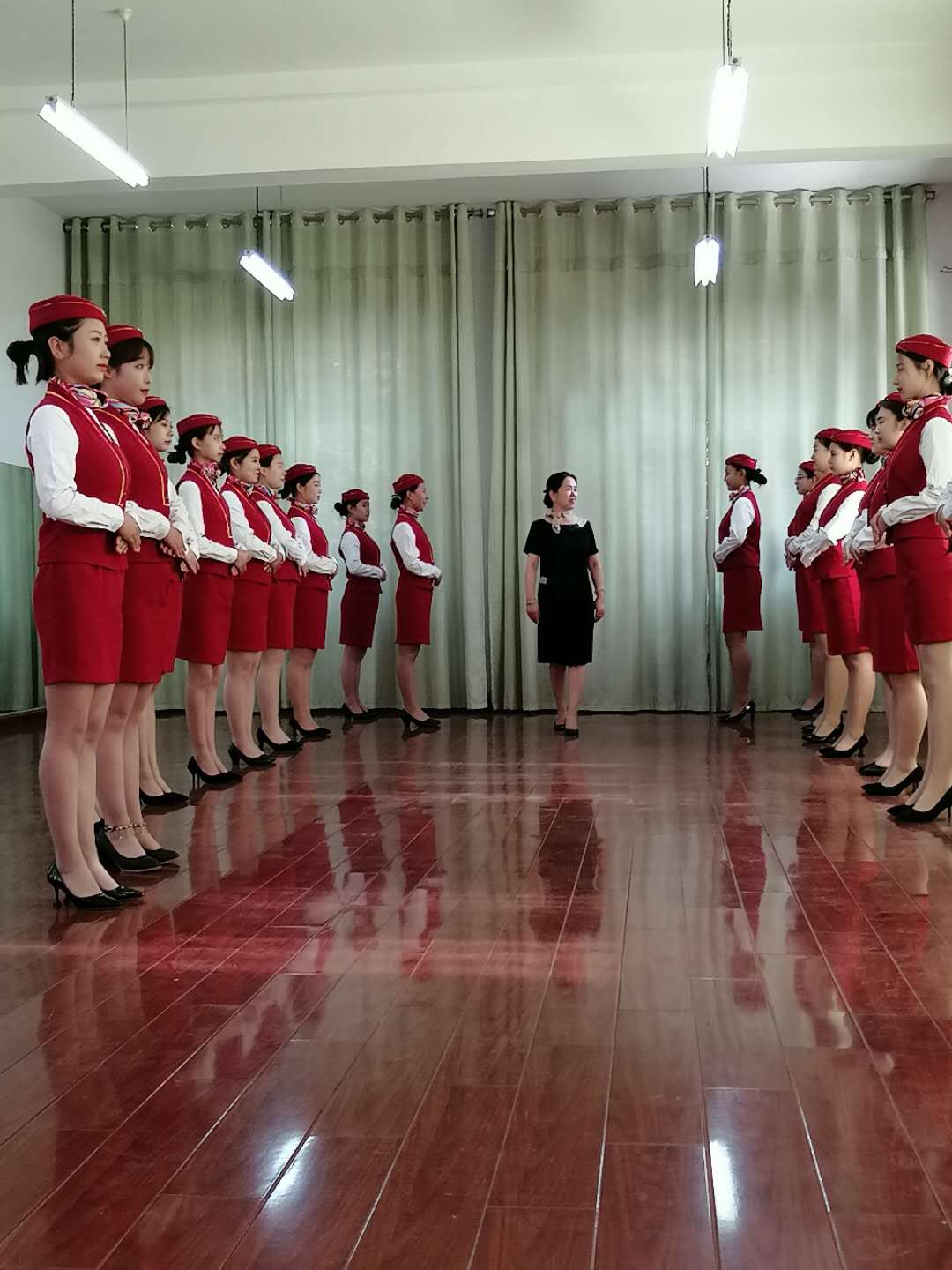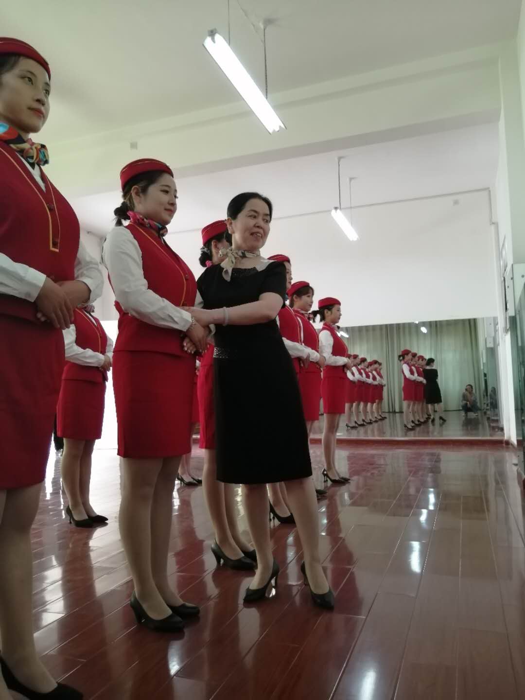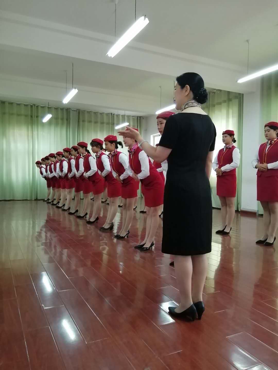 古之学者必严其师,师严然后道尊,太阳成集团tyc122cc17高铁乘务五年班本周礼仪实训课由公司邢经理授课,课前员工穿着整齐的实训服,做好开学第一节课的准备。