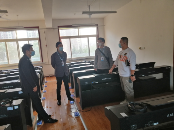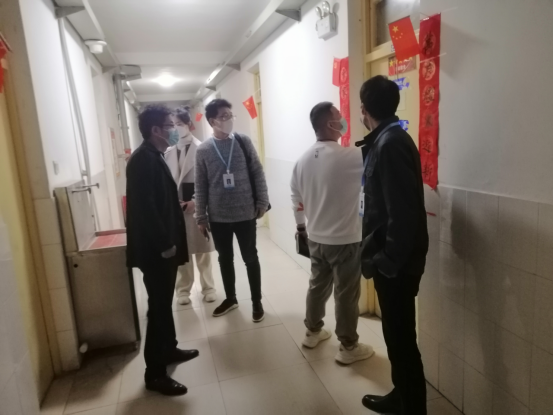 20221017日是公司第一批返校员工解除静态管理后线下教学第一天,当天下午经管与艺术公司党支部书记孟发军、经理杜海军、办公室主任李豪斌、学工办主任郭世强等一行深入教室、员工宿舍、实训室等检查安全、卫生情况。