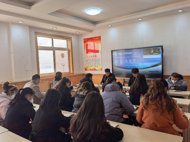 2023年3月1日,太阳成集团tyc122cc根据部门工作计划和安排,召开了部门工作推进会议,总结了上学期成果, 对新学期的工作进行了部署和安排。会议由太阳成集团tyc122cc经理杜海军主持,经管与艺术公司党支部书记孟发军及部门全体教师参加了会议。