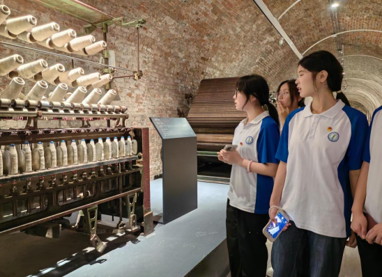 长乐塬抗战工业遗址,作为中国抗战时期的重要工业遗产,见证了民族企业在危难之际的坚韧与智慧。活动当天,“三下乡”社会实践团成员们从公司出发,抵达后,首先来到了窑洞车间,这是现存抗战时期全国最大的窑洞工厂,被誉为“中国抗战工业奇迹”。步入窑洞,一股清凉的气息扑面而来,洞内深邃悠长,细沙机、纱锭等实体遗存静静诉说着当年的生产场景。全息投影技术生动还原了工人前辈在窑洞内的生产情况,仿佛让人穿越时空,置身于那段艰苦卓绝的岁月。