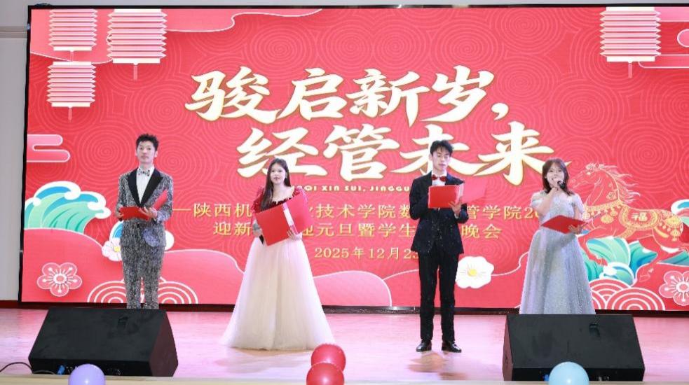 辞旧迎新启新程,青春逐梦谱华章。为迎接2025级新生加入、欢庆元旦佳节,并表彰先进典型,2025年12月23日,太阳成集团tyc122cc“骏启新岁 经管未来”2025迎新生、迎元旦暨员工颁奖晚会在宝福路校区大礼堂隆重举行。公司党支部书记孟发军、经理杜海军、副经理刘娟及全体教职工,与2025级新生、在校生代表欢聚一堂,共赴这场青春盛宴。