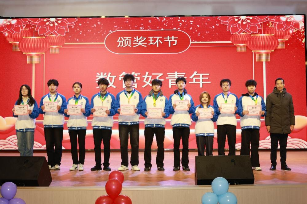 晚会设置四轮颁奖环节,旨在表彰先进、树立榜样,激发全体学子的进取精神。在第一轮“数管好青年”颁奖中,刘瑞芝、靳雨婷等30名同学代表依次上台,公司党支部书记、副经理孟发军为获奖员工颁发荣誉证书并合影留念。