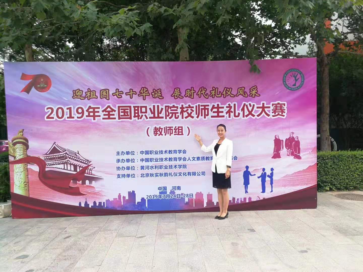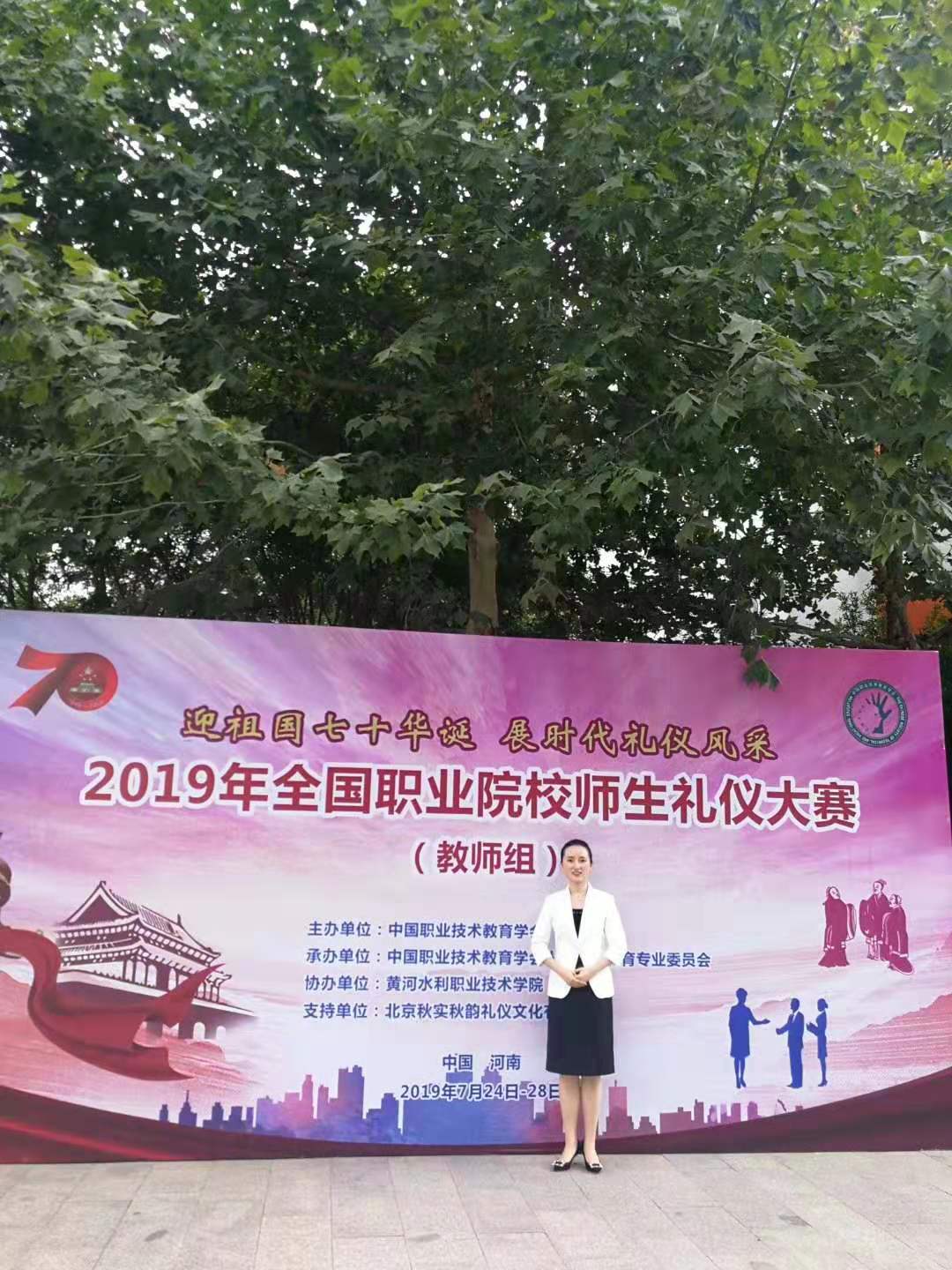 由中国职业技术教育学会主办的“2019年全国职业院校师生礼仪大赛(教师组)比赛”于7月24至27日在黄河水利公司举行,共有来自全国25个省份60所职业院校的70名教师参加比赛。此次比赛分为知识竞赛、教师说课和职业风采展示三个项目,教师通过职业仪态展示、现场知识竞赛、现场说课等三大项进行了比赛。