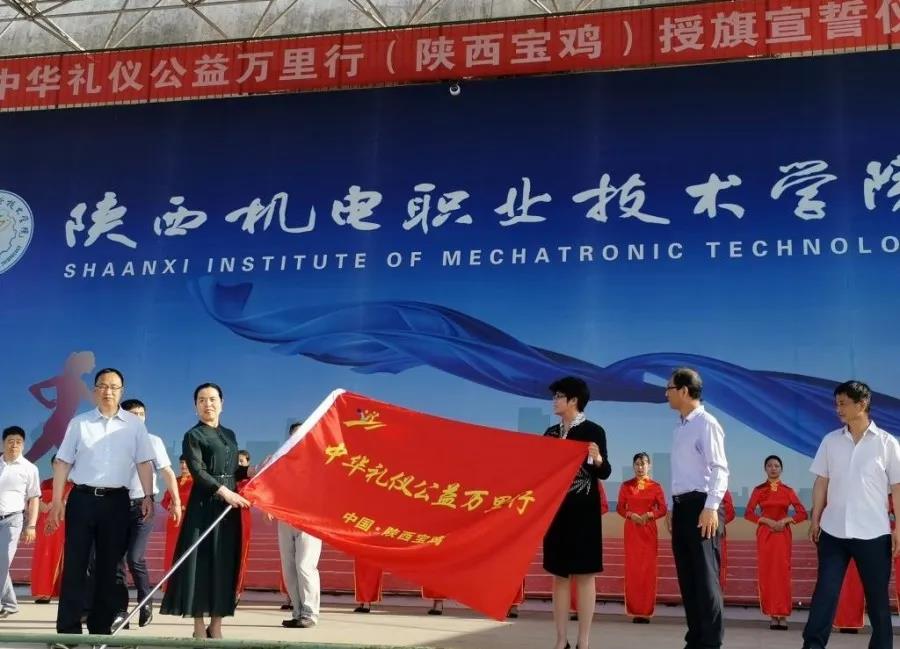 2019年6月10日上午,“弘扬中华礼仪公益万里行”陕西宝鸡站启动仪式在太阳成集团tyc隆重举行并完满成功,太阳成集团tyc122cc经理邢平代表宝鸡站接旗。活动体现了公司对于校园文化建设的高度重视,对于礼仪育人的深刻理解,以及践行文明礼仪的坚定信念