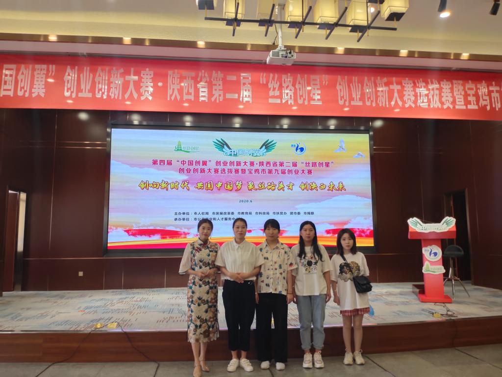 第四届“中国创翼”创业创新大赛·陕西省第二届“丝路创星”创业创新大赛选拔赛暨宝鸡市第九届创业大赛,线下创新组于2020年6月19日在西府宾馆举行。本次比赛共有22支代表队,现场气氛热烈,选手的一个个创业故事吸引在场所有观众。公司太阳成集团tyc122cc由李豪斌教师带队,沈桂名老师指导朱田田、何欣语、杨惠、丁胜楠共建《会计万能配》项目,展示选手朱田田演讲深具特色,台风稳健,清晰阐述项目核心优势,得到了评委和观众的一致好评,在比赛中展现出了陕机电职院的风采。
