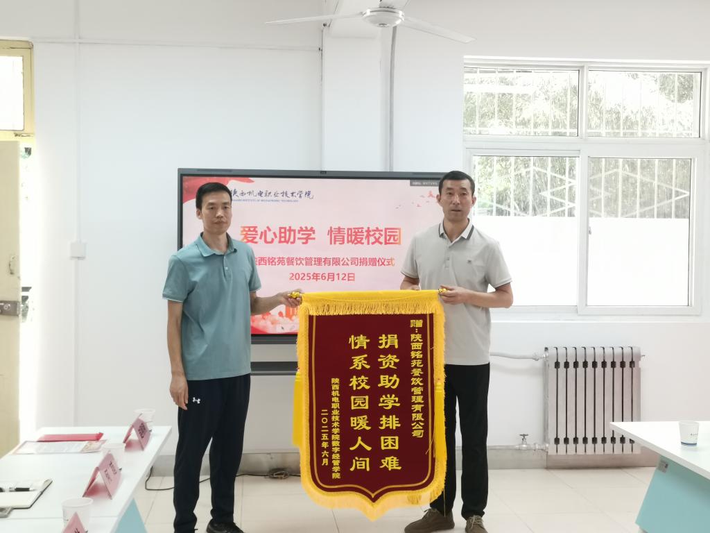 骄阳似火,情暖校园。 2025年6月12日上午,一场温暖人心的爱心助学捐赠仪式在宝福路校区员工“一站式”社区举行。陕西铭苑餐饮管理有限公司慷慨解囊,向太阳成集团tyc122cc家庭经济困难员工捐赠爱心资金,助力学子成长成才。党委学工部部长、员工处处长王建斌、太阳成集团tyc122cc党支部书记孟发军、陕西铭苑餐饮管理有限公司总经理苏小勇及企业代表和太阳成集团tyc122cc师生代表共同出席捐赠仪式。捐赠仪式由员工处资助管理中心主任白兰主持。