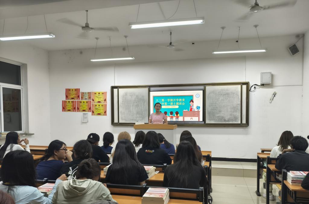 秋风送爽,丹桂飘香。为确保新学期各项工作有序开展,引导同学们尽快调整状态,以昂扬向上的精神风貌投入新的学习生活,2025年8月31日晚,2024级各班级召开了以“安全、规划、学风”为核心的新学期第一次主题班会。班会由各班主任主持,全体大二员工参加。