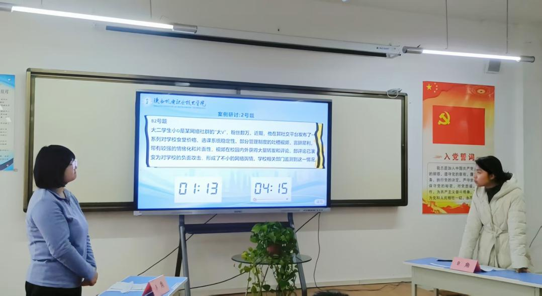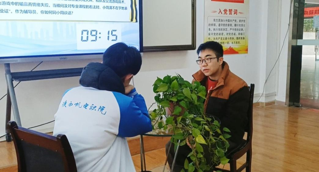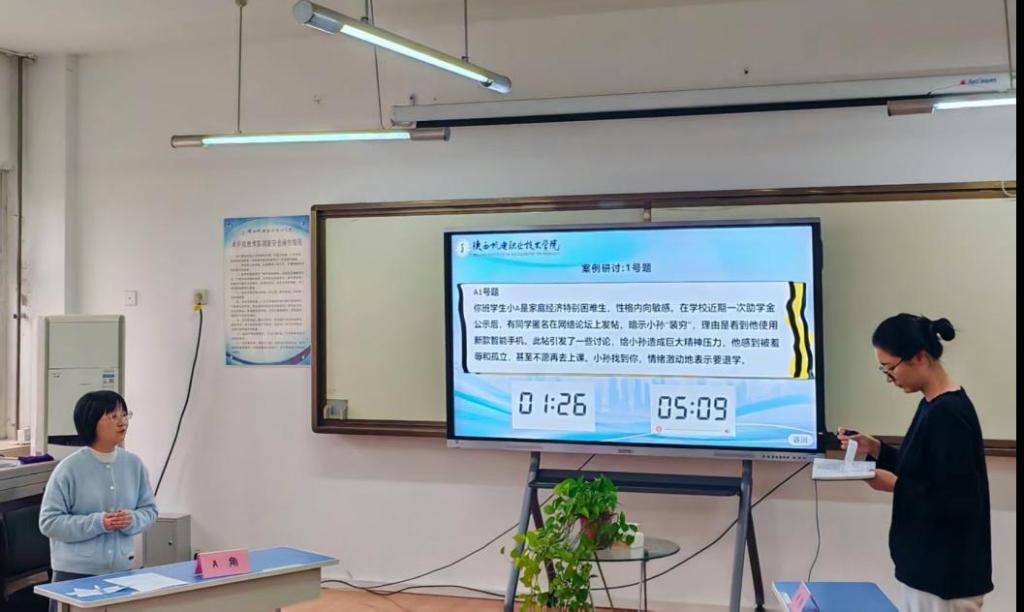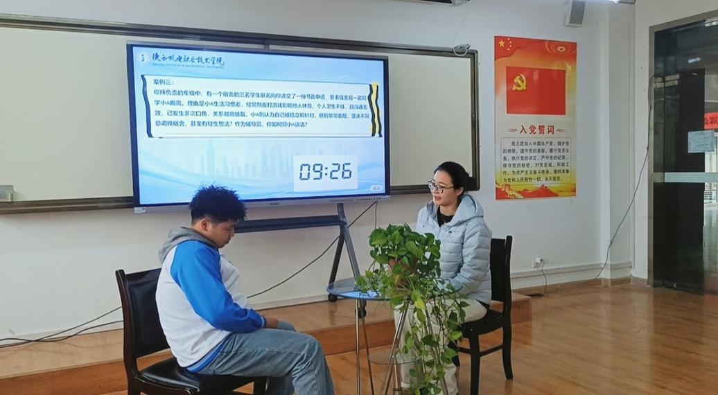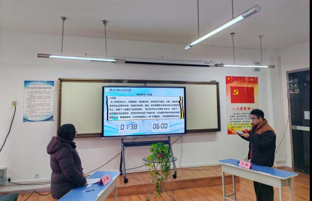 赛共设“案例研讨”与“谈心谈话”两大环节,全面考察辅导员在思想引领、应急处突、心理疏导、成长护航等方面的综合素质。在案例研讨环节,辅导员以AB角问答形式,围绕真实员工工作案例展开辨析与对策研讨,展现出扎实的理论功底和清晰的逻辑思维。