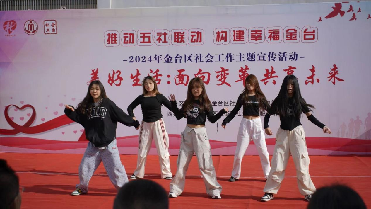 当天,志愿们通过精彩的舞蹈和合唱表演助力了2024年金台区“美好生活:面向变革·共享未来”社会工作主题宣传活动的成功举行。