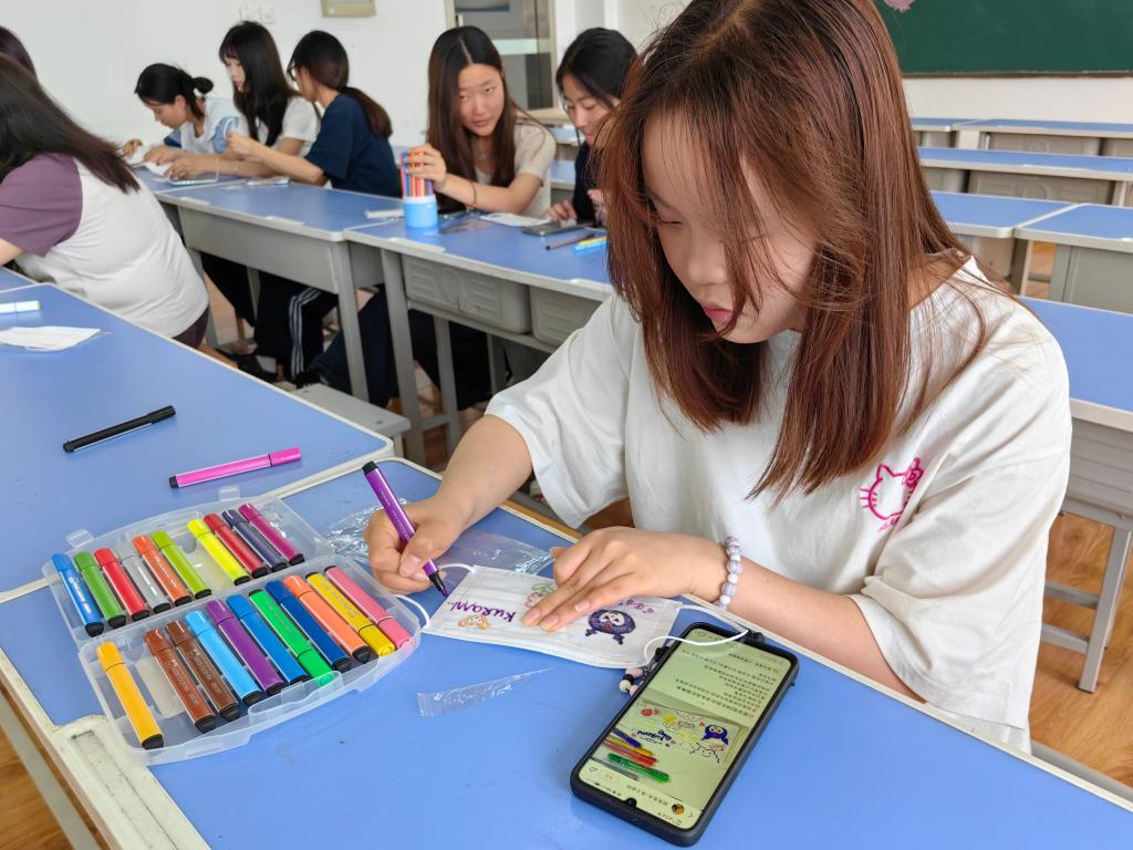 在“心灵涂鸦”环节,打破传统绘画规则的束缚,不论绘画基础如何,同学们都能拿起画笔与颜料,肆意挥洒线条与色彩。凌乱交错的线条,成为宣泄焦虑的出口;明艳绚丽的色彩,寄托着对未来的希望;每一幅抽象图案背后,都深藏着独特的故事。现场丰富的水彩、马克笔等工具,充分满足创意表达需求,让同学们将潜意识里的压力与情绪,转化为一个个可见的艺术符号。