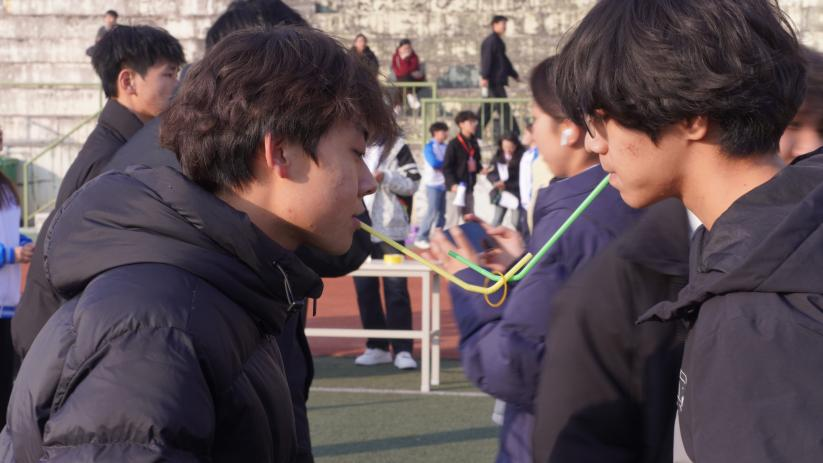 吸管运动:衔着吸管传递圆环,呼吸节奏、衔接角度都得精准拿捏,手不能碰、嘴不能松,稍有差池物品便会掉落;细腻的操作、专注的神情,搭配失误后的哭笑不得,是专注力与细腻度的趣味较量。