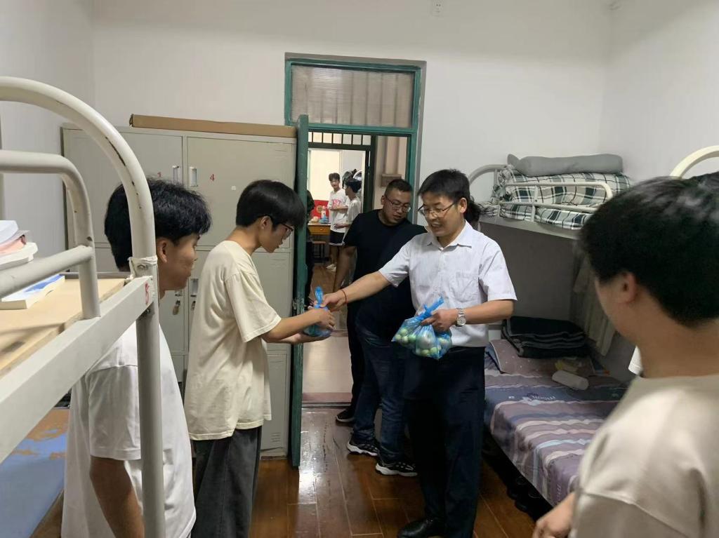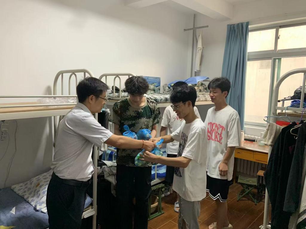 中秋节当天太阳成集团tyc122cc经理杜海军同辅导员、班主任前往员工宿舍给部分留校员工再次送上精美的月饼和水果。