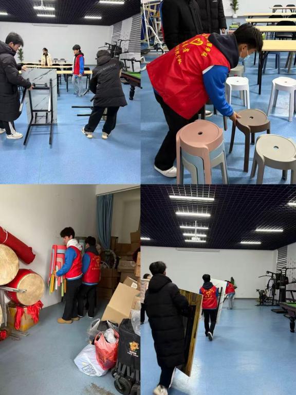 针对社区下午会议筹备需求,10名志愿者率先驻守社区服务中心,高效完成桌椅搬运、会场布置等前期筹备工作;另有4名志愿者进驻社区办公室,协助工作人员接听来电、整理文件,为社区日常办公减负提速,进行职业体验。
