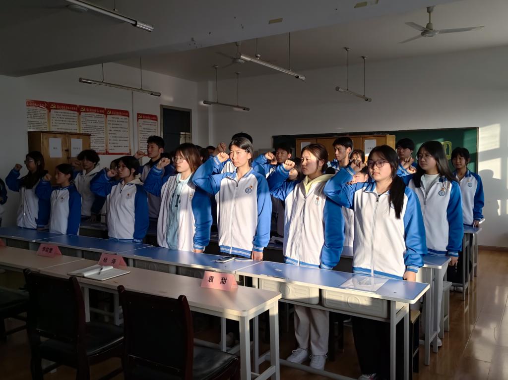随后,在公司团总支组织部副部长刘敏萱的带领下,全体新团员面向鲜艳的团旗,高举右拳庄严宣誓。铿锵誓言在会议室回响,彰显出他们加入共青团的坚定信念与昂扬斗志。